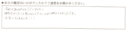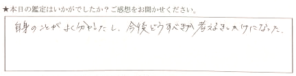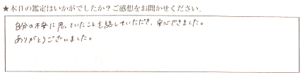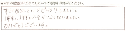すごい当たっていてビックリしました。将来に対する不安がなくなりました。ありがとうございます。
