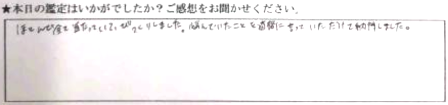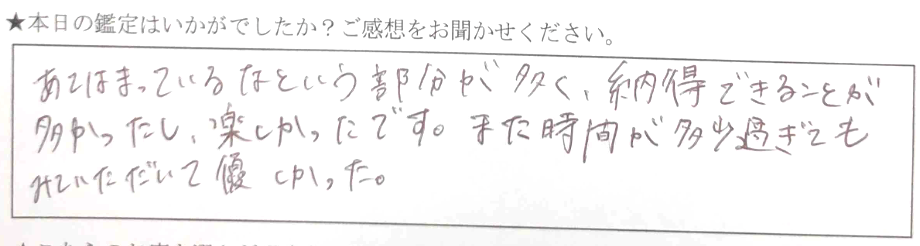 ほとんど全て当たっていてびっくりしました。悩んでいたことを適確に言っていただけて納得しました。