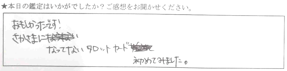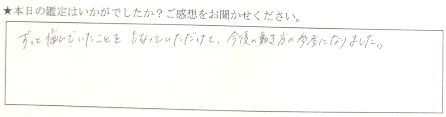 ずっと悩んでいたことを占っていただけて、今後の動き方の参考になりました。