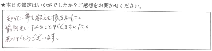 知りたいことを教えていただきました。前向きになることができました。ありがとうございます。