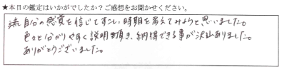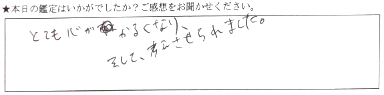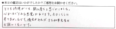 とても納得がいき、腑に落ちる感じがしました。心がほぐされた感覚があります。今日こちらに来て良かったです。機会があれば、また和幸先生にお願いしたいです。