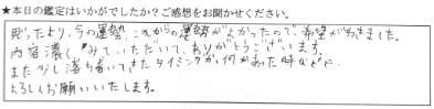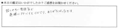 話しやすい雰囲気で適確にアドバイスくださり、ありがたかったです。