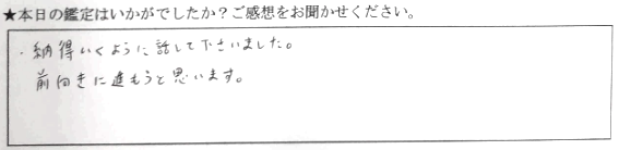 納得いくように話して下さいました。前向きに進もうと思います。