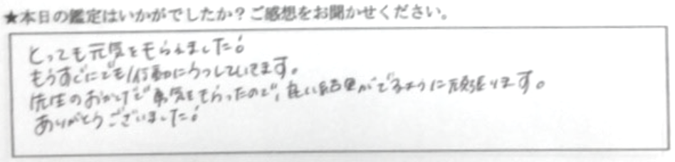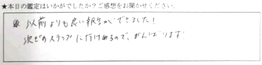 以前よりも良い報告ができました!次のステップに行けるので、がんばります!