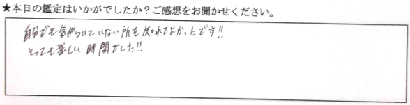 自分でも気がついていない所も知れてよかったです‼︎とっても楽しい時間でした‼︎